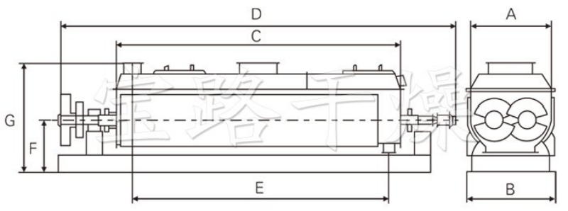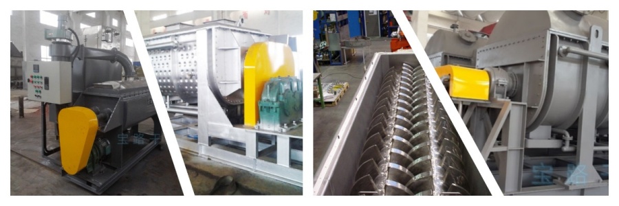 桨叶干燥机的壳体为W型,壳体内一般安排二到四根空心搅拌轴。壳体有密封端盖与上盖,防止物料粉尘外泄。